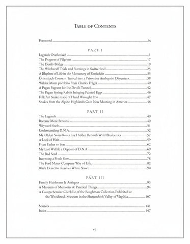 Medieval spiritual and medical traditions get detailed review. Ten centuries later, the same spirits were quoted verbatim in transcripts of the Swiss witchcraft trials, spotlighting a Bachmann woman unjustly accused. The path persists even into the present day, with Swiss mountain boys dressing up as demons, and serpents made at home on the front porches of the Shenandoah Valley.